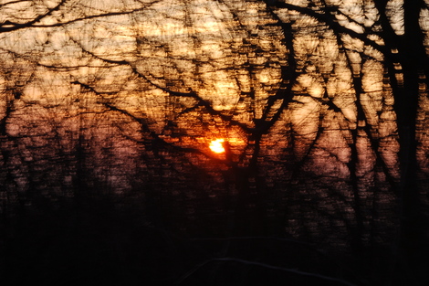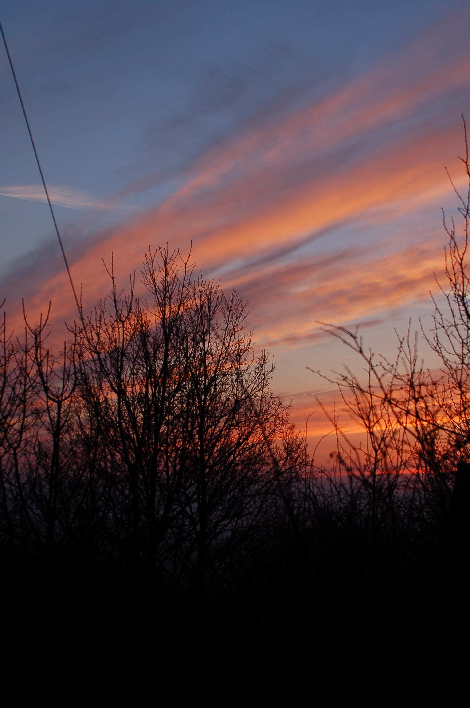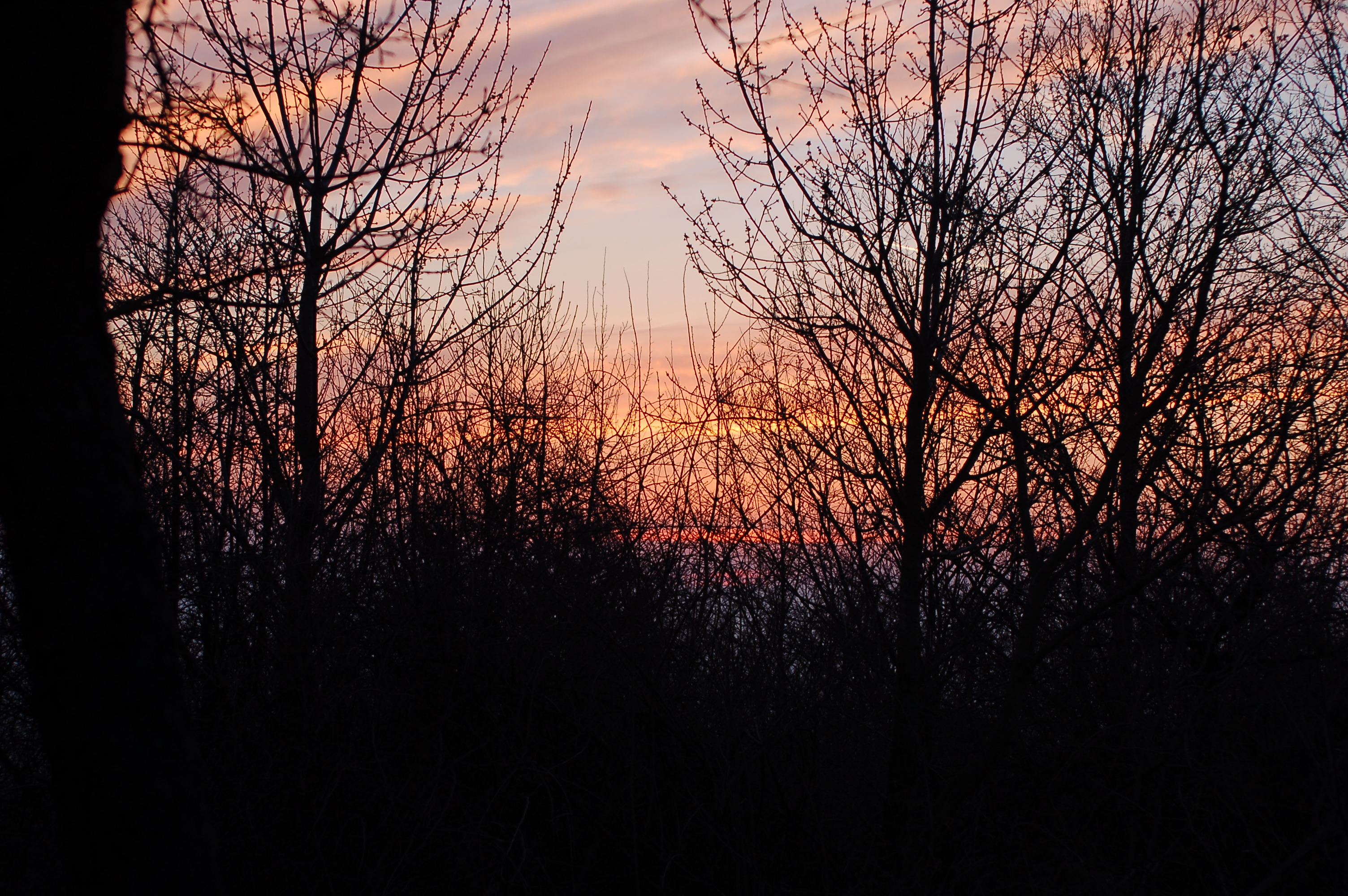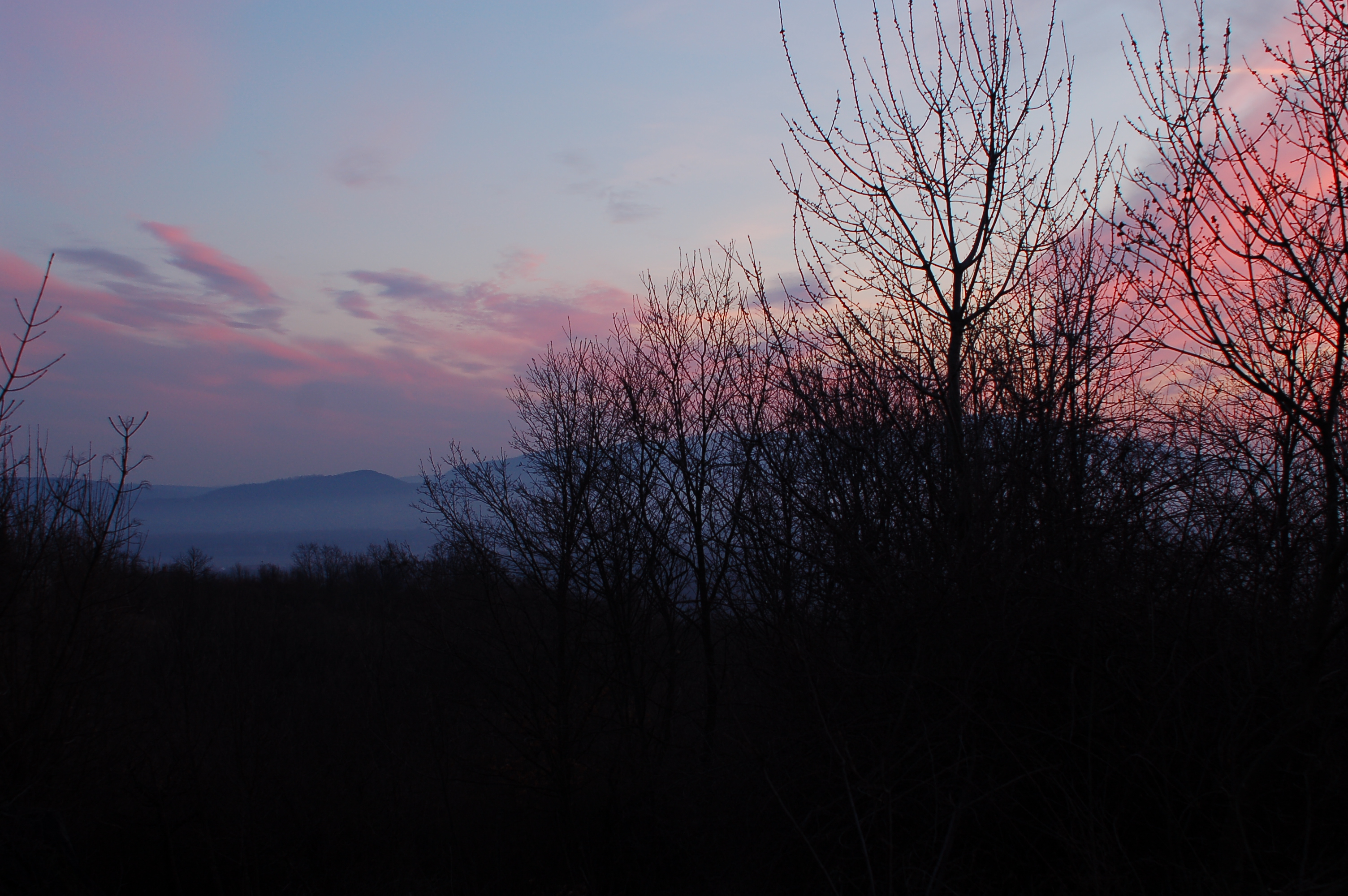 Superbe levé de soleil à la trop belle maison de Gergő, au village de Dunabogdàny, hors et au nord de Budapest.