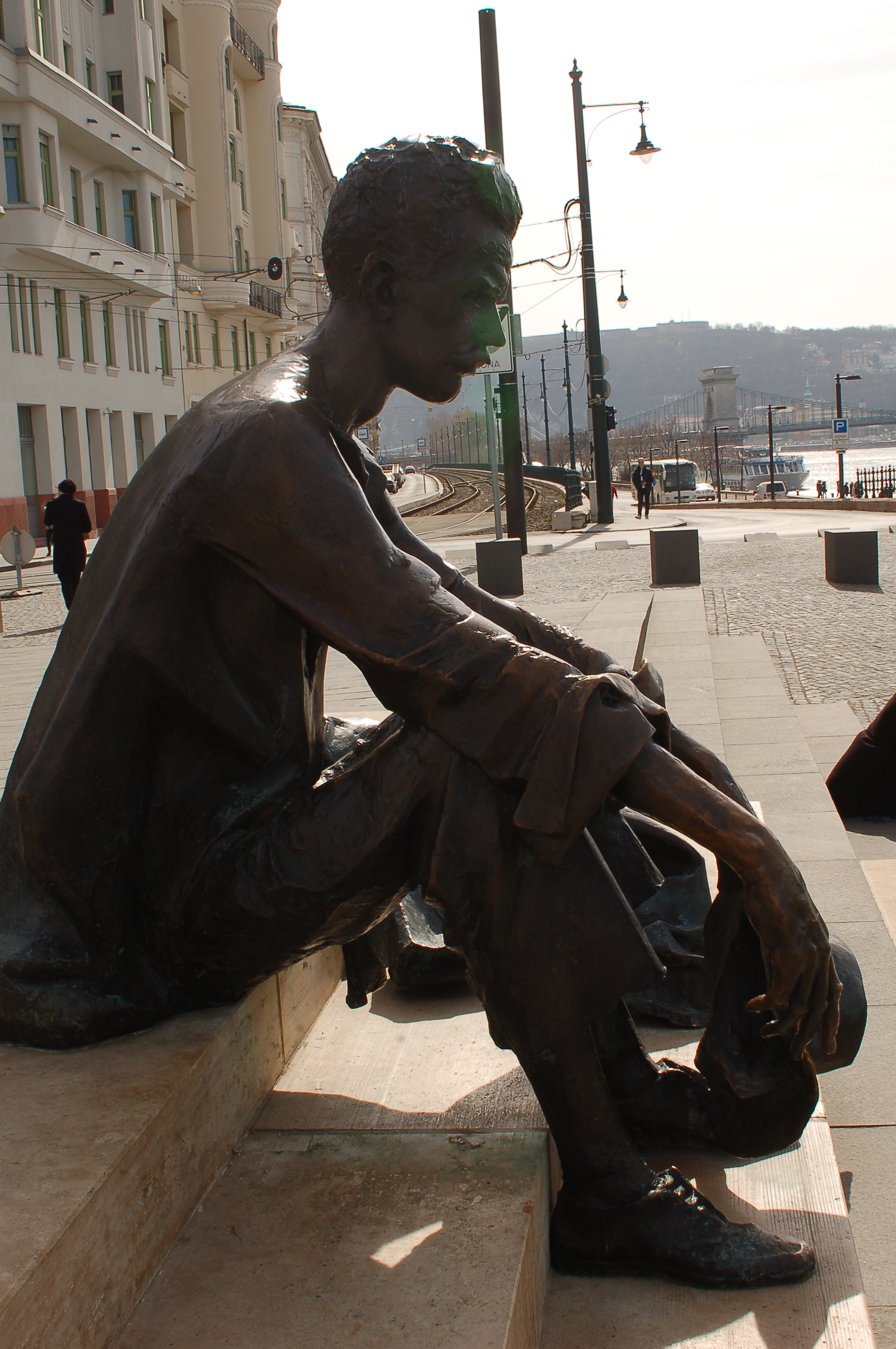 Statue « Attila József », poète hongrois, à gauche du Parlement face au Danube.