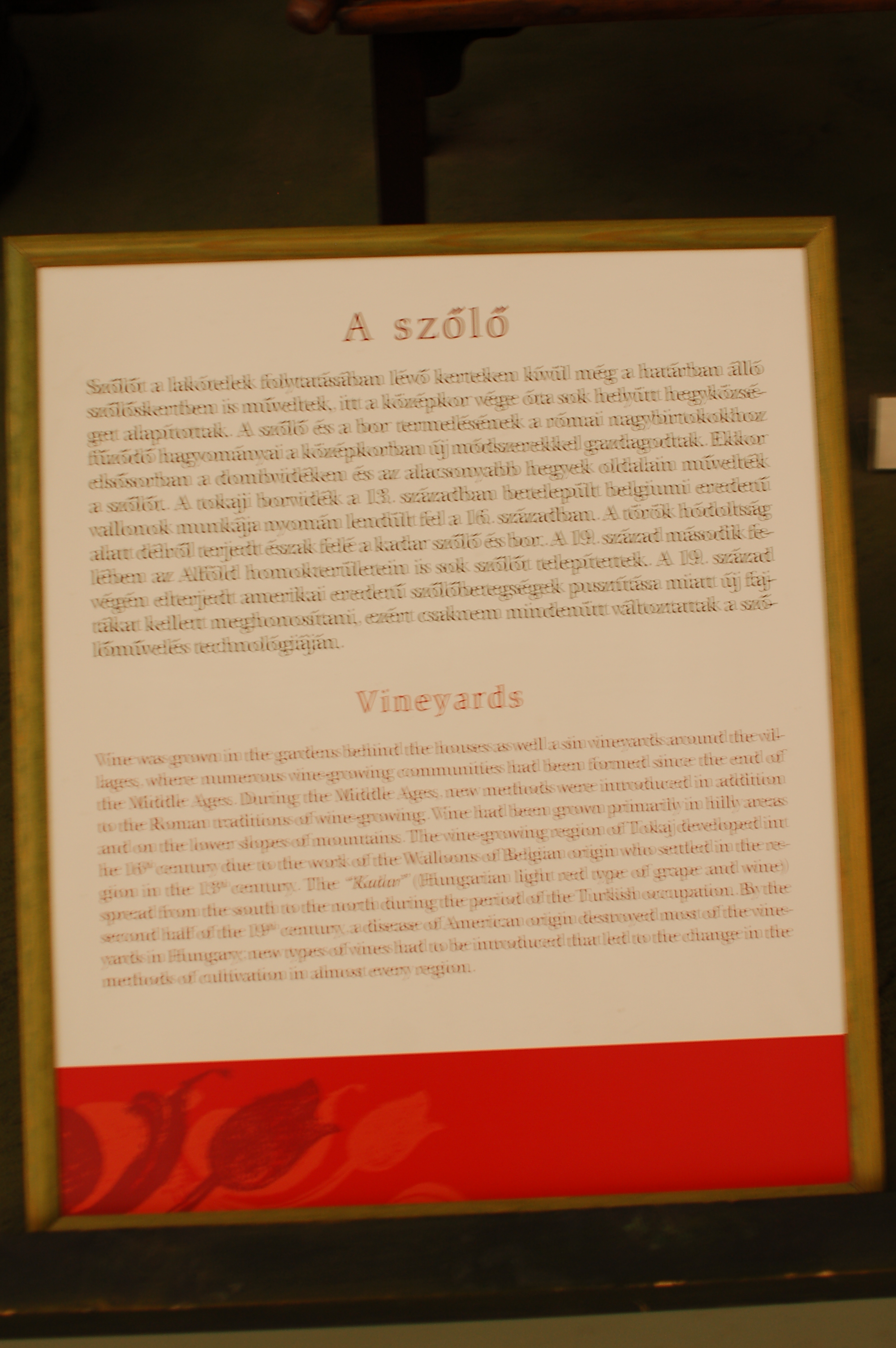 Ecritaux expliquant la culture du vin (très floue..), musée ethnographique de budapest.