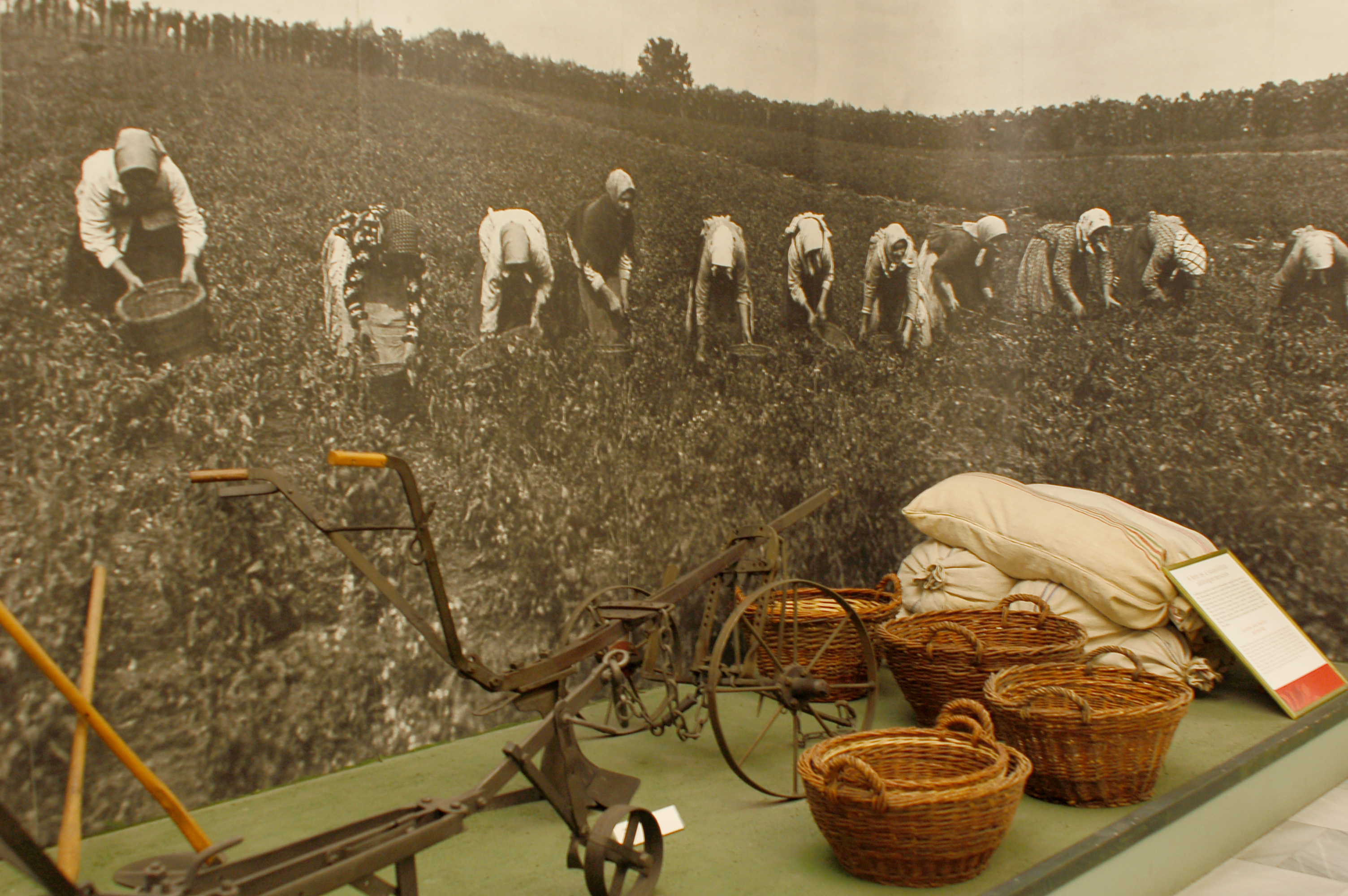 Ouvrières récoltant le paprika et outillages pour travailler la terre, musée ethnographique de budapest.