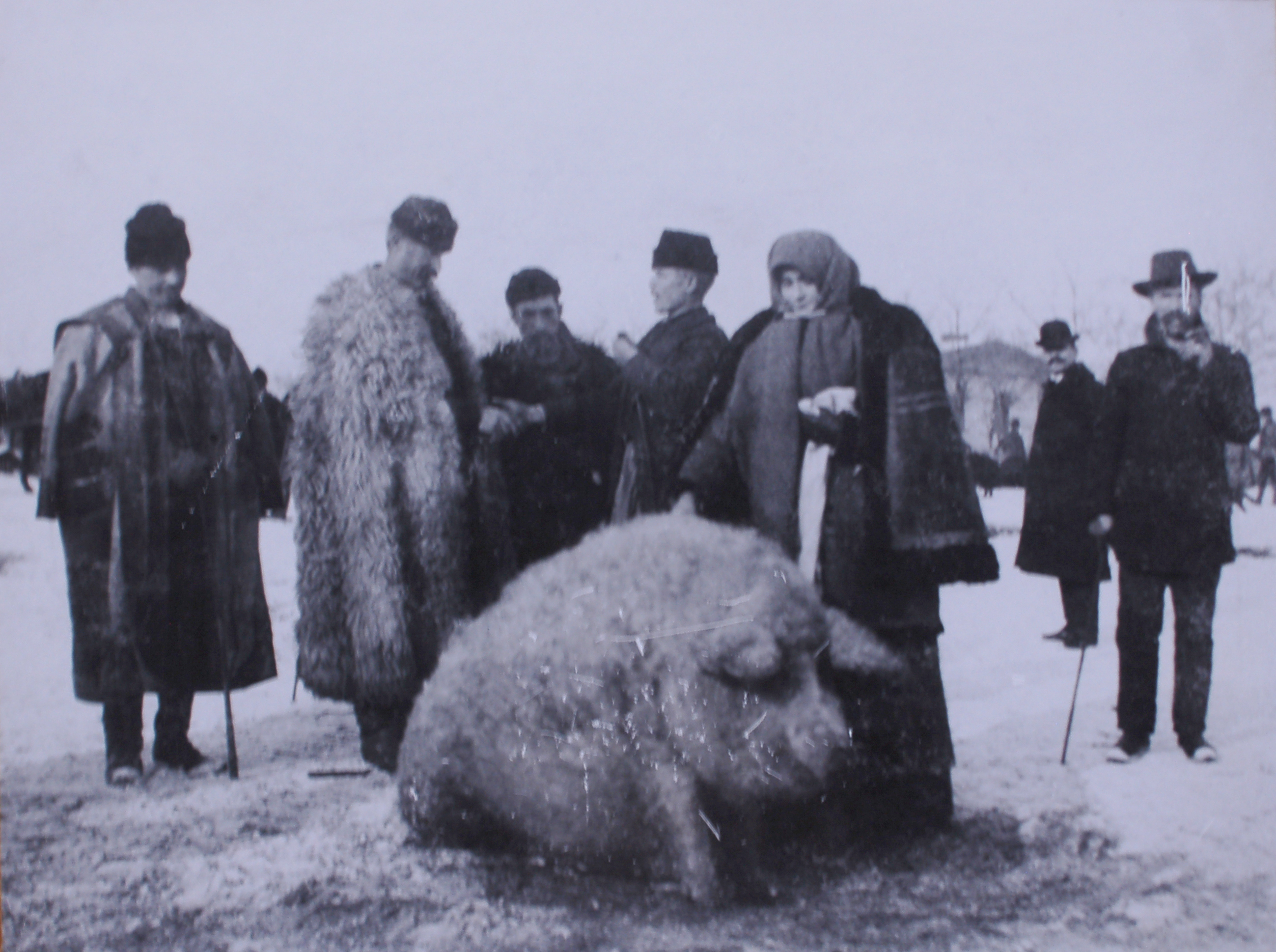Photo d’un gros cochon hongrois, musée ethnographique de budapest.
