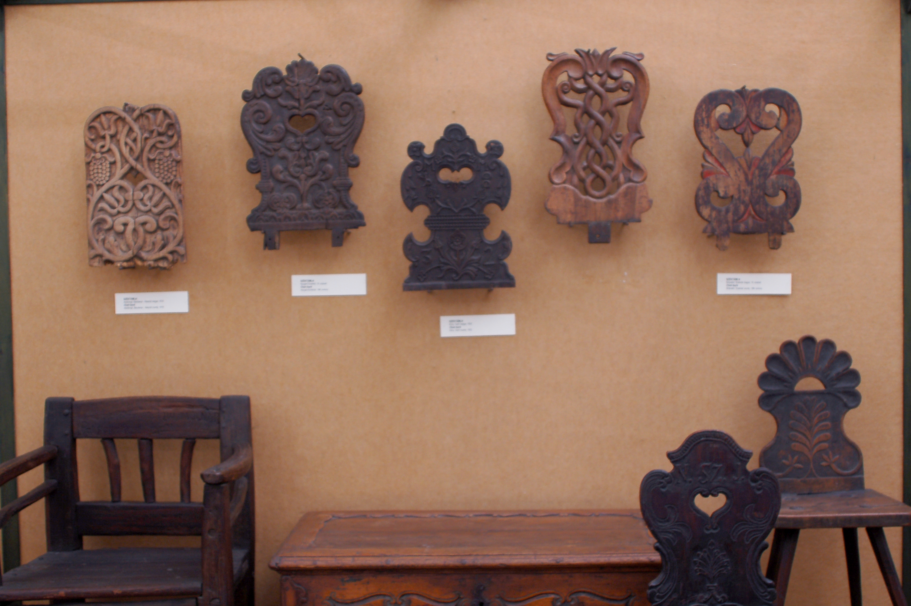 Ornement d’ébénistes sur dossier de chaises, musée ethnographique de budapest.