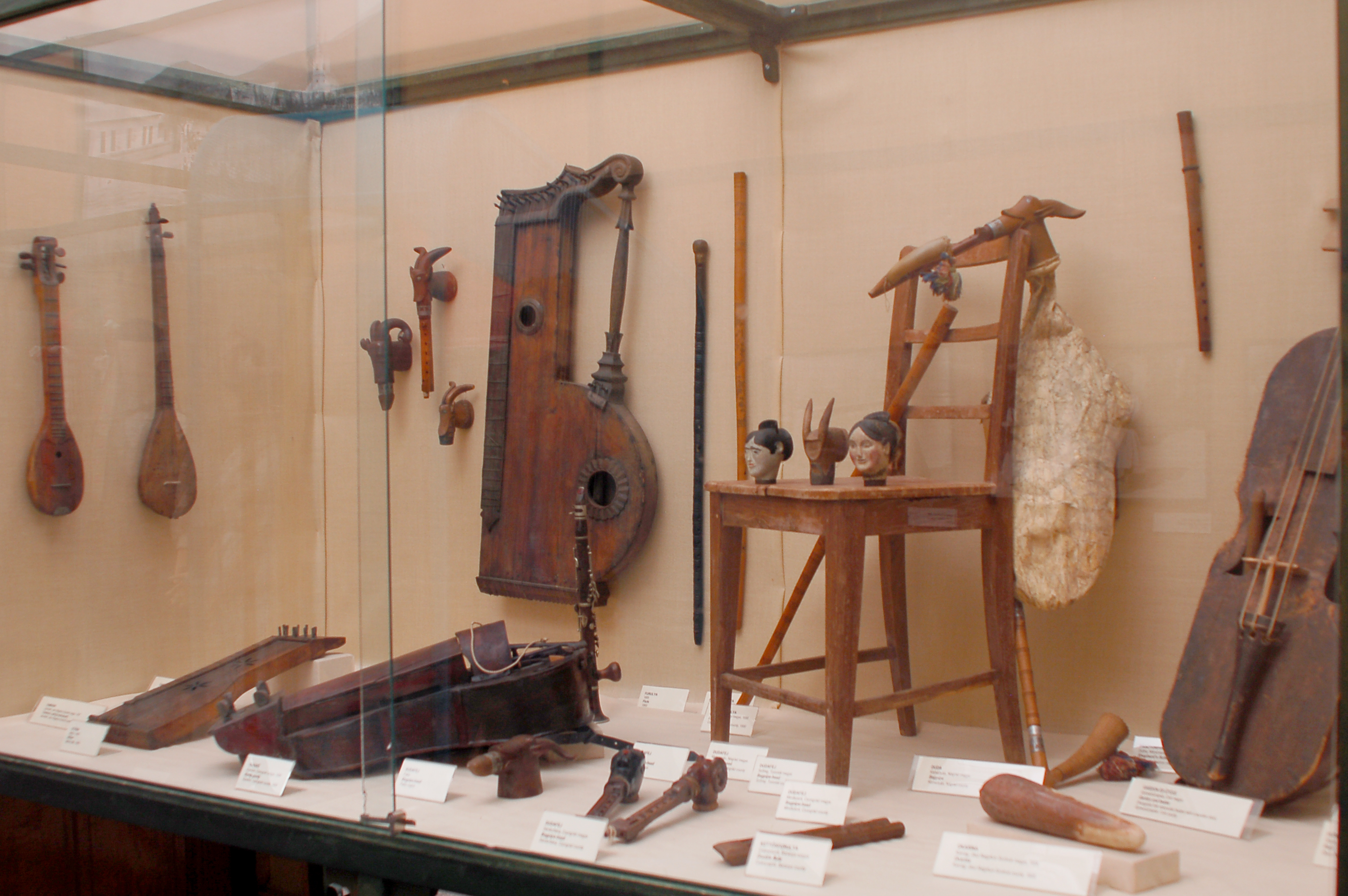Instruments de musique traditionnelle hongroise, musée ethnographique de budapest.