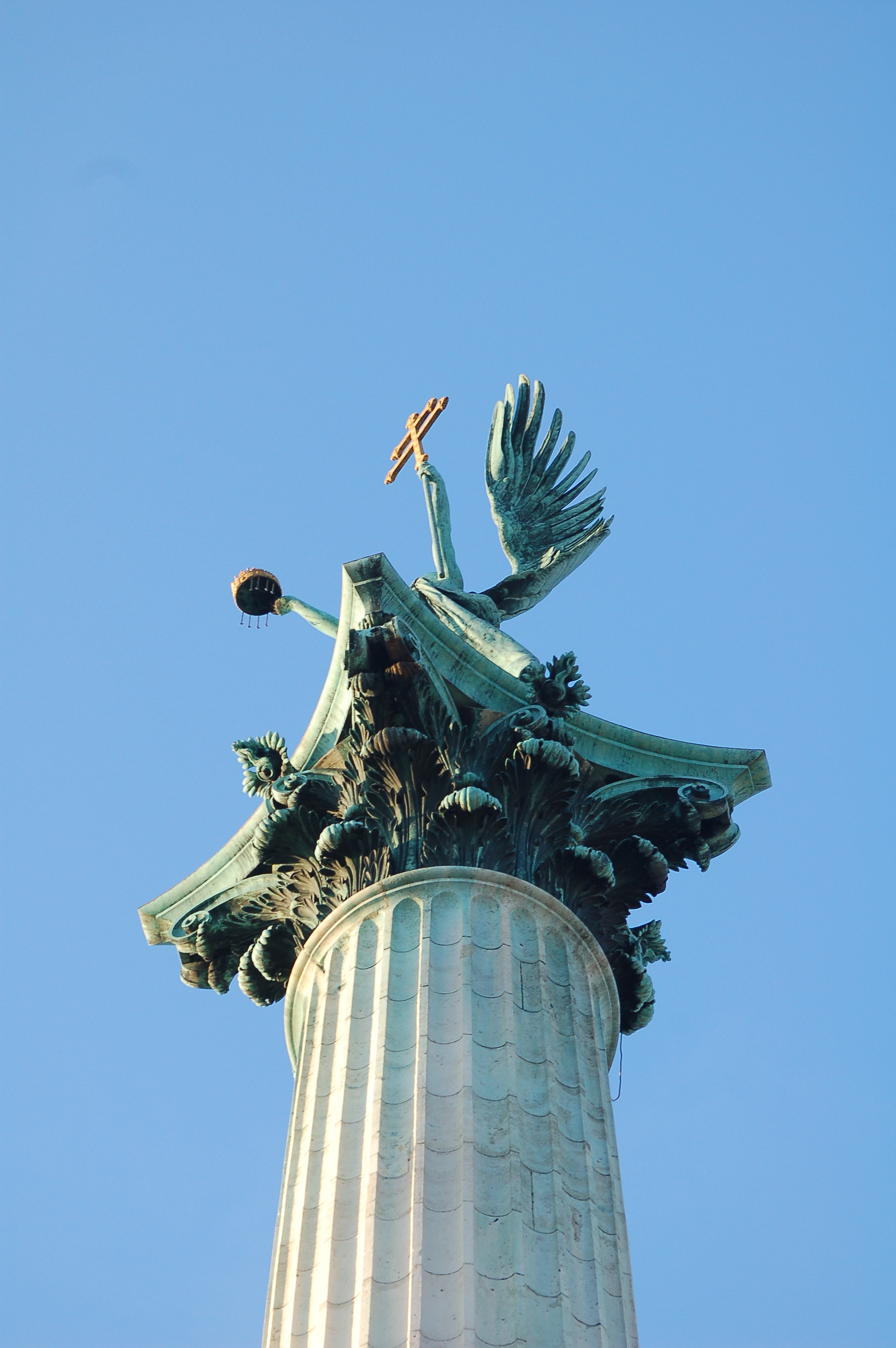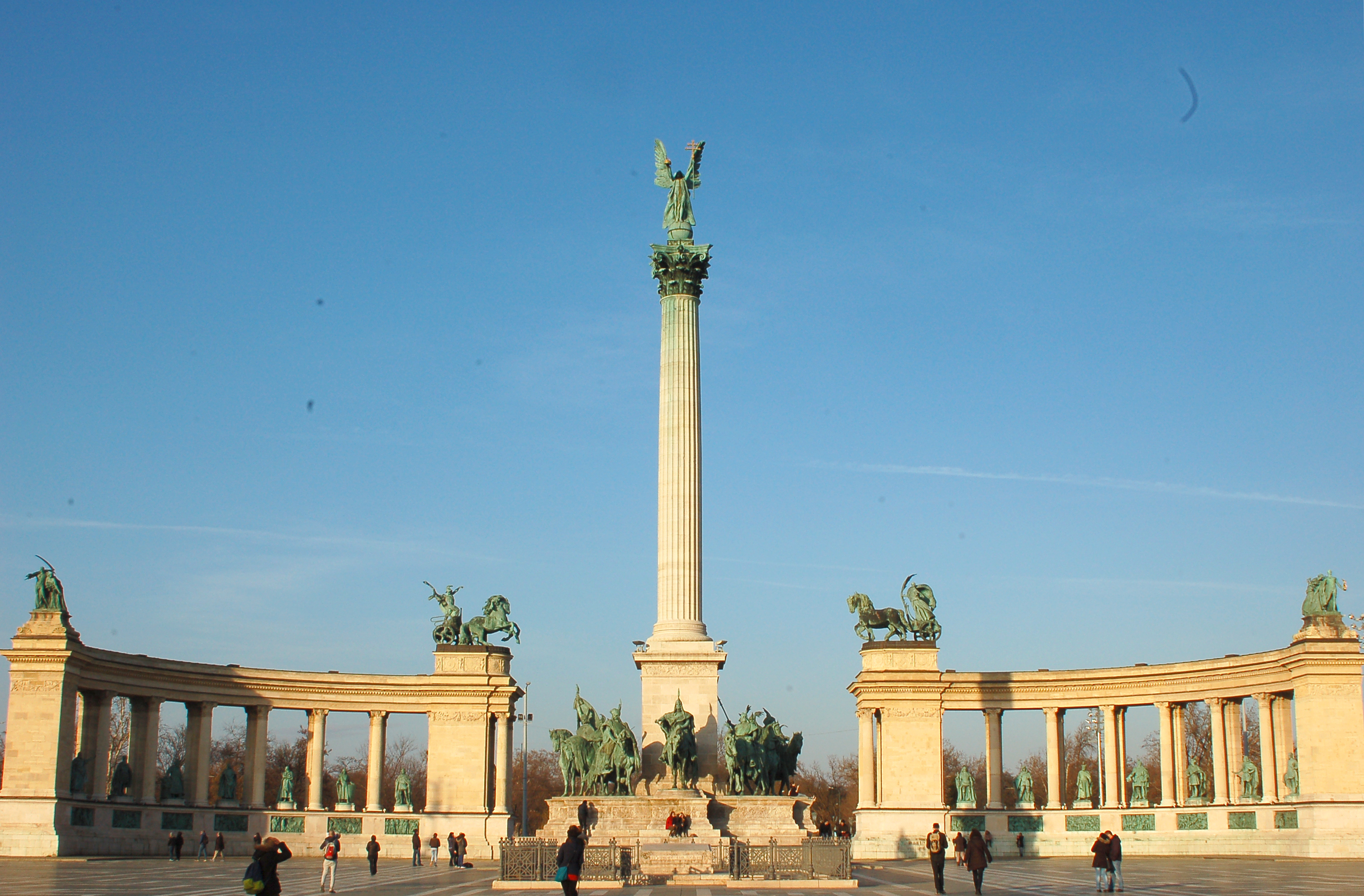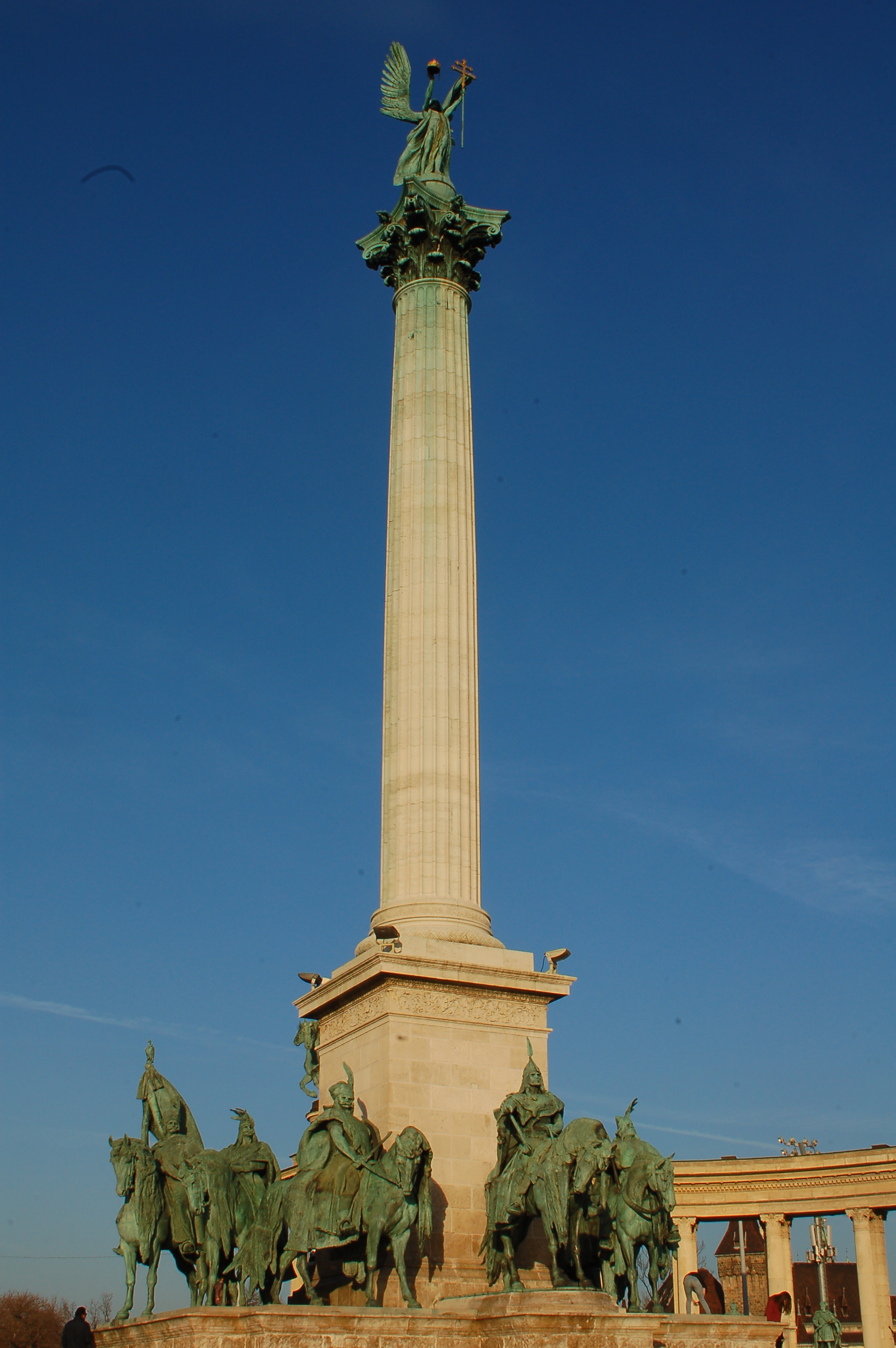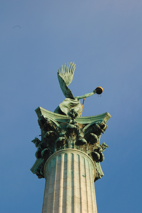 Colonne centrale composé d’un ange au sommet et des chefs de tribus en bas, place des héros.