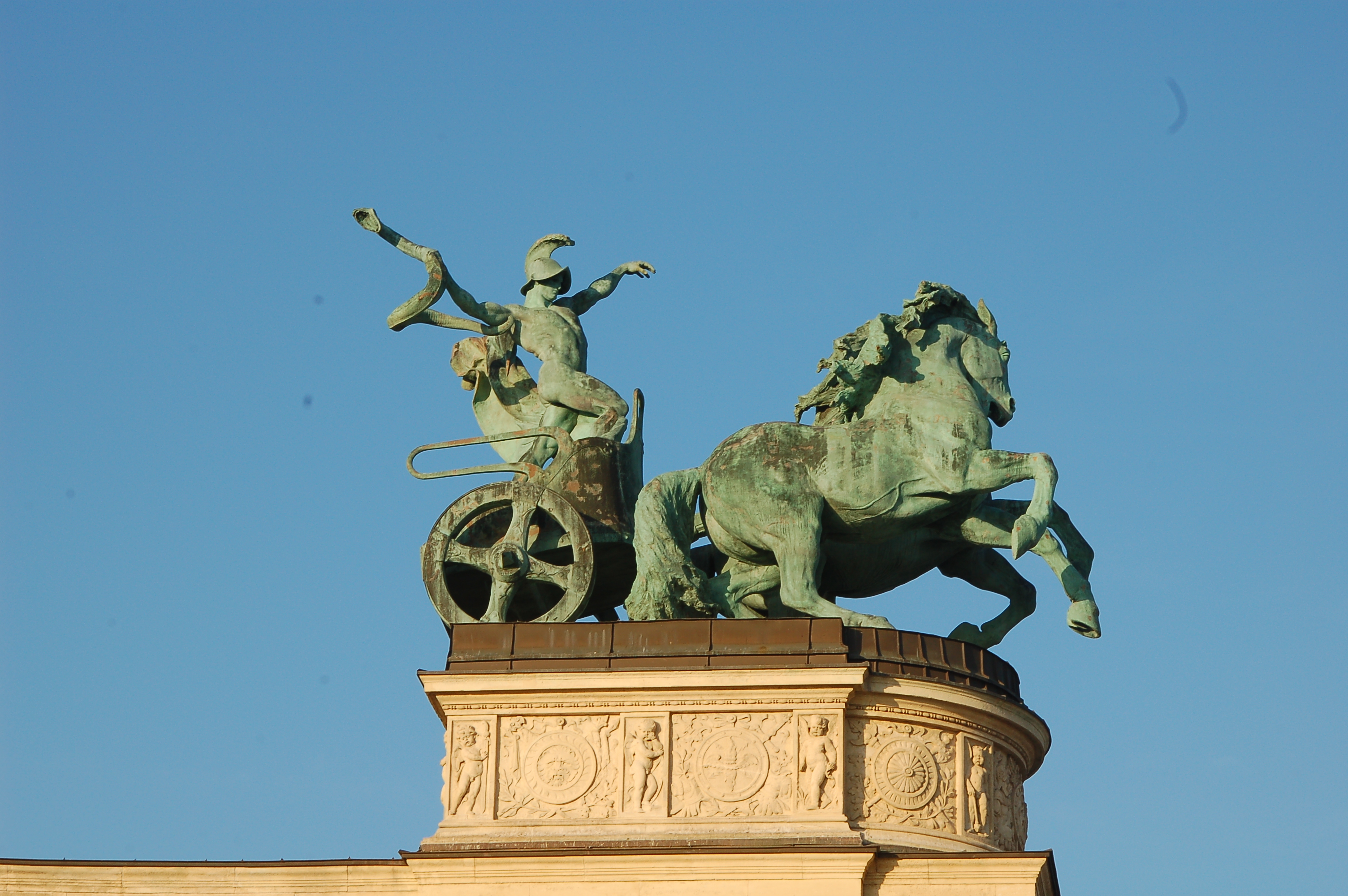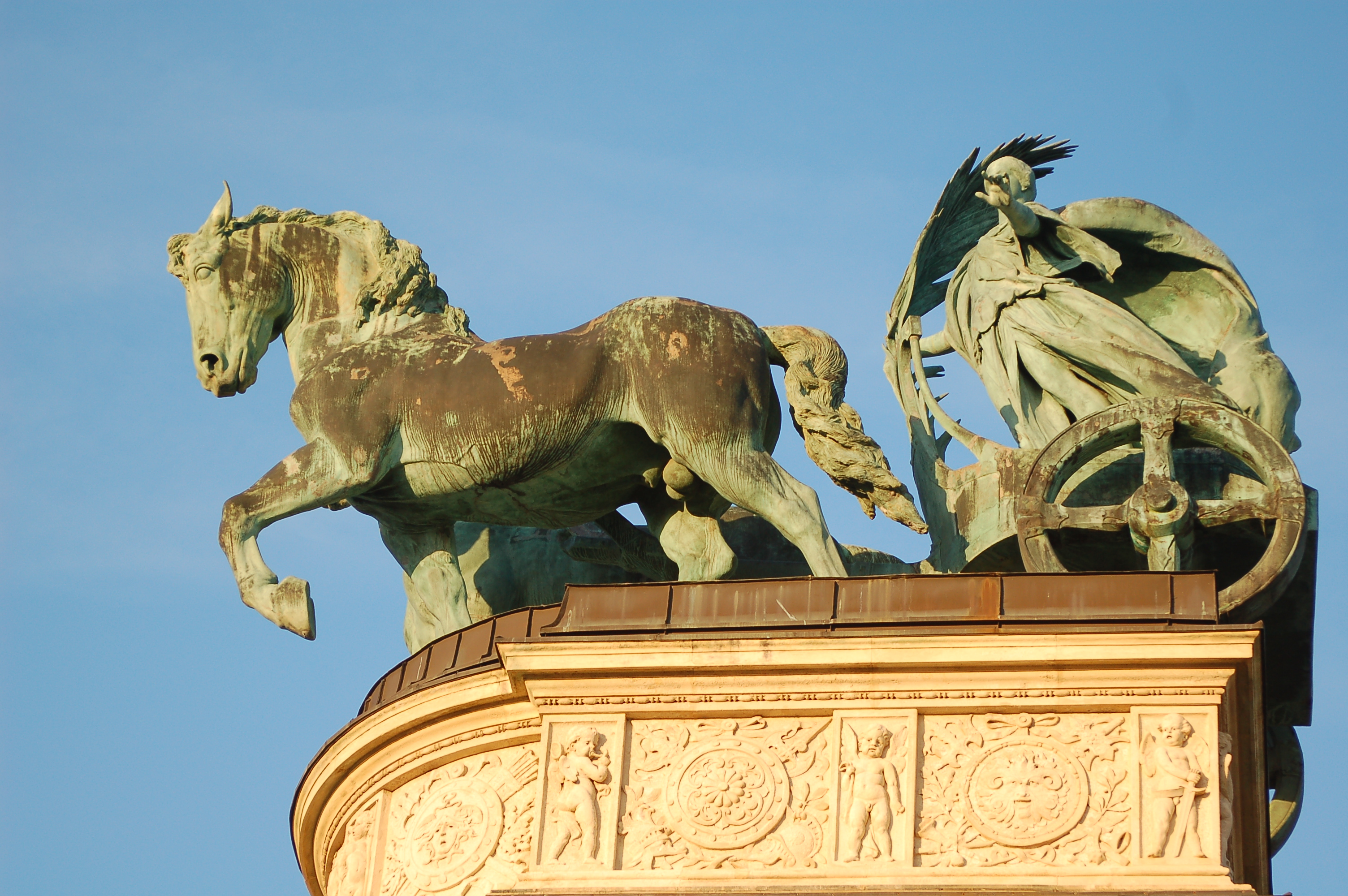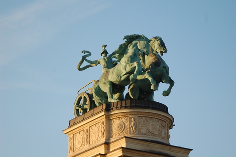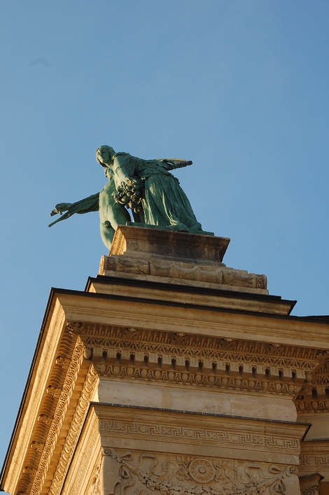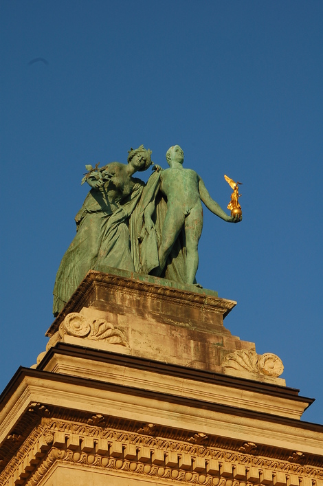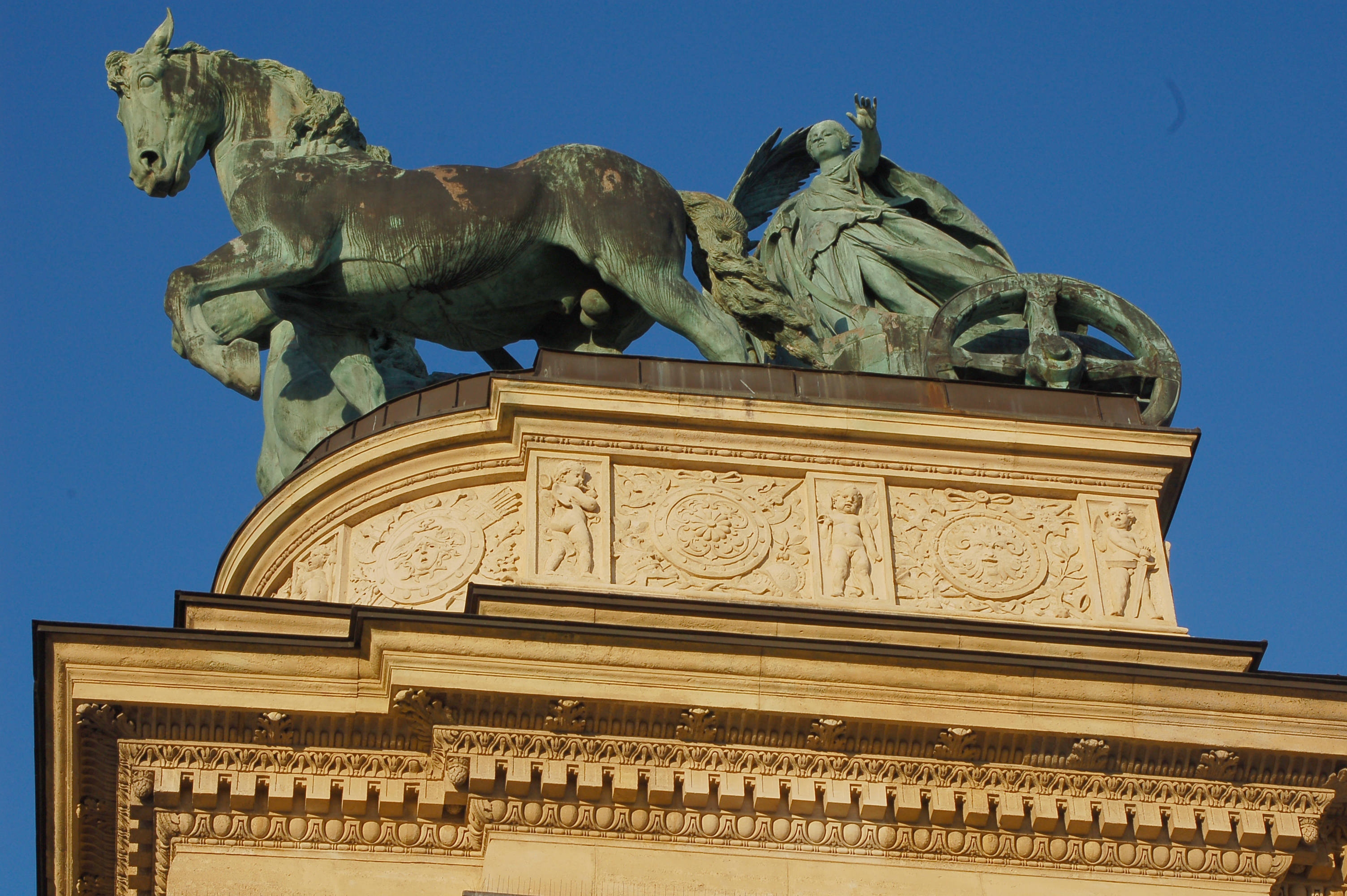 Scultpure haut arche de droite, place des héros.Scultpure haut arche de droite, place des héros.