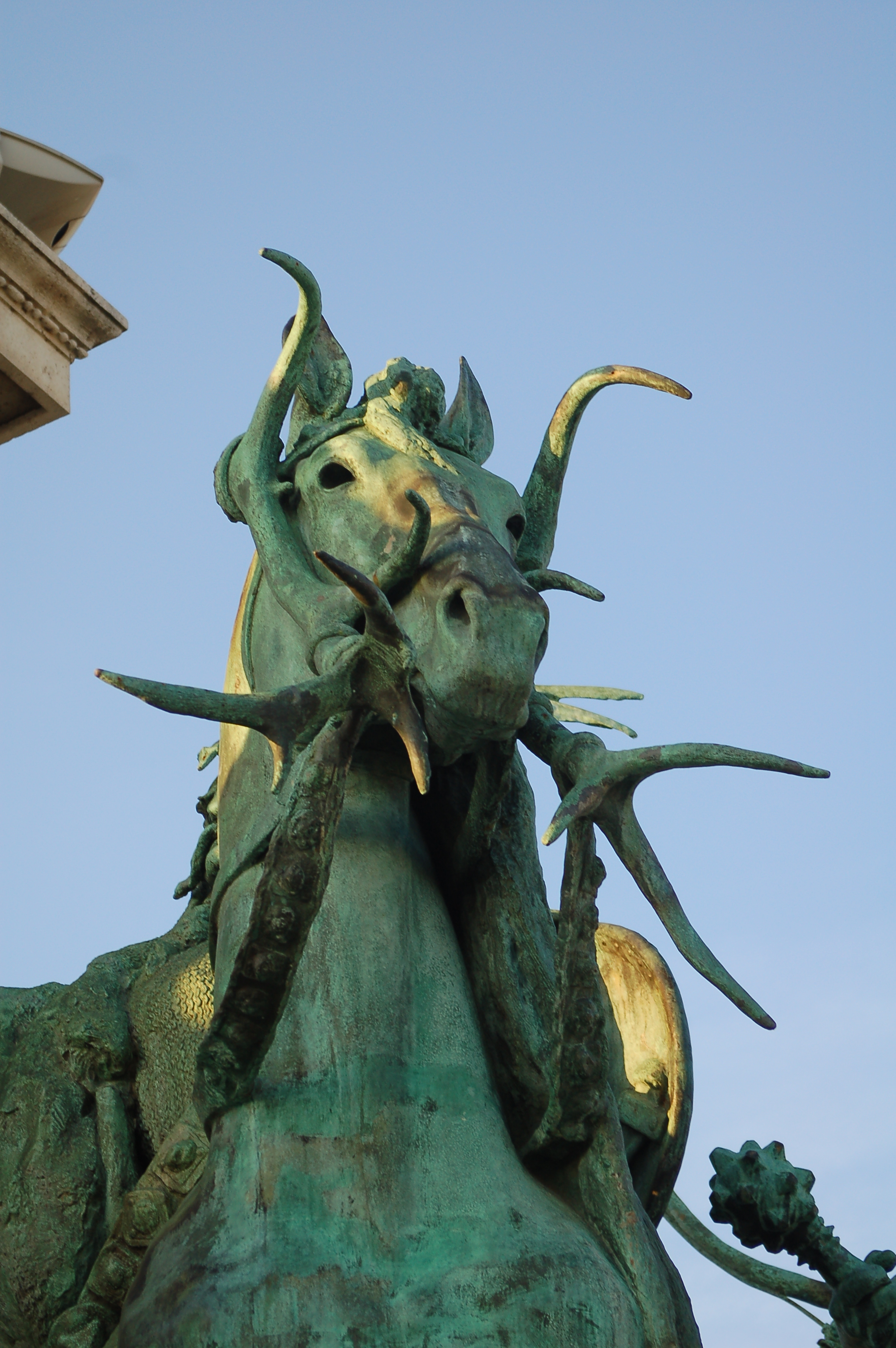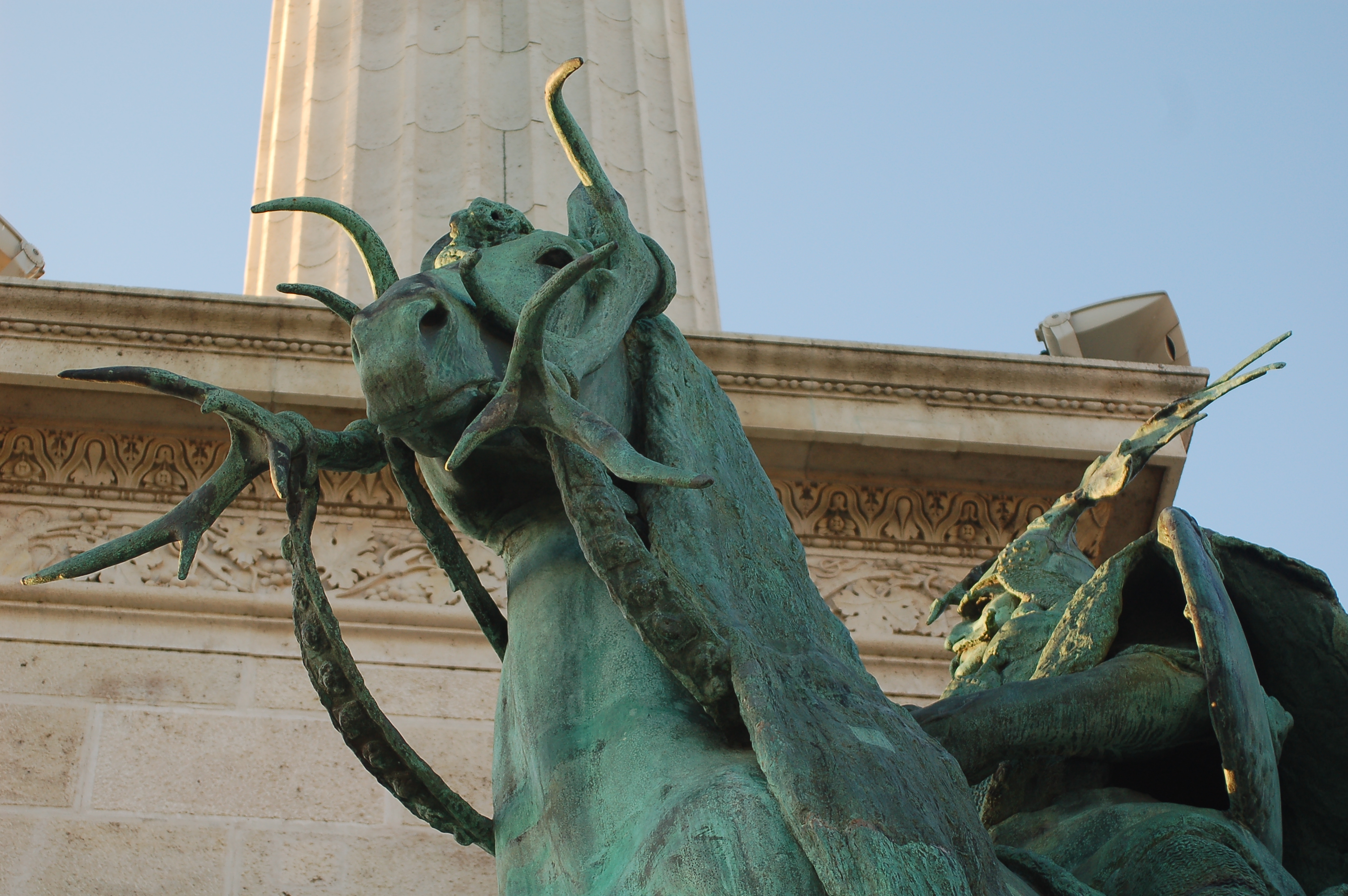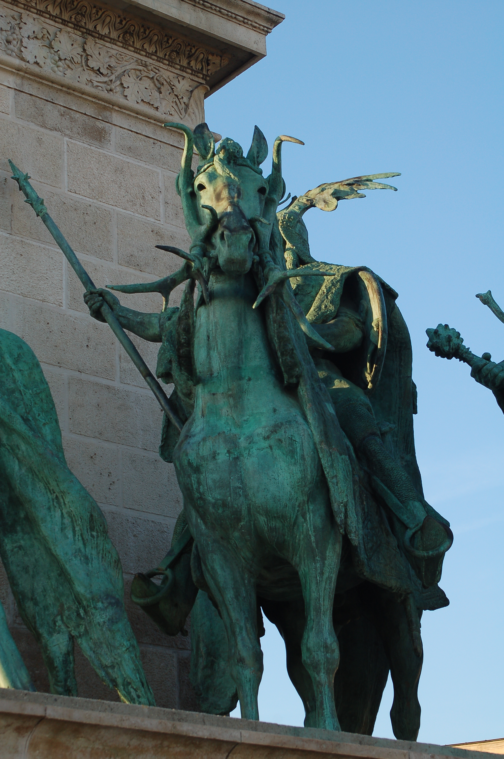 Scultpure haut arche de droite, place des héros.Scultpure haut arche de droite, place des héros.