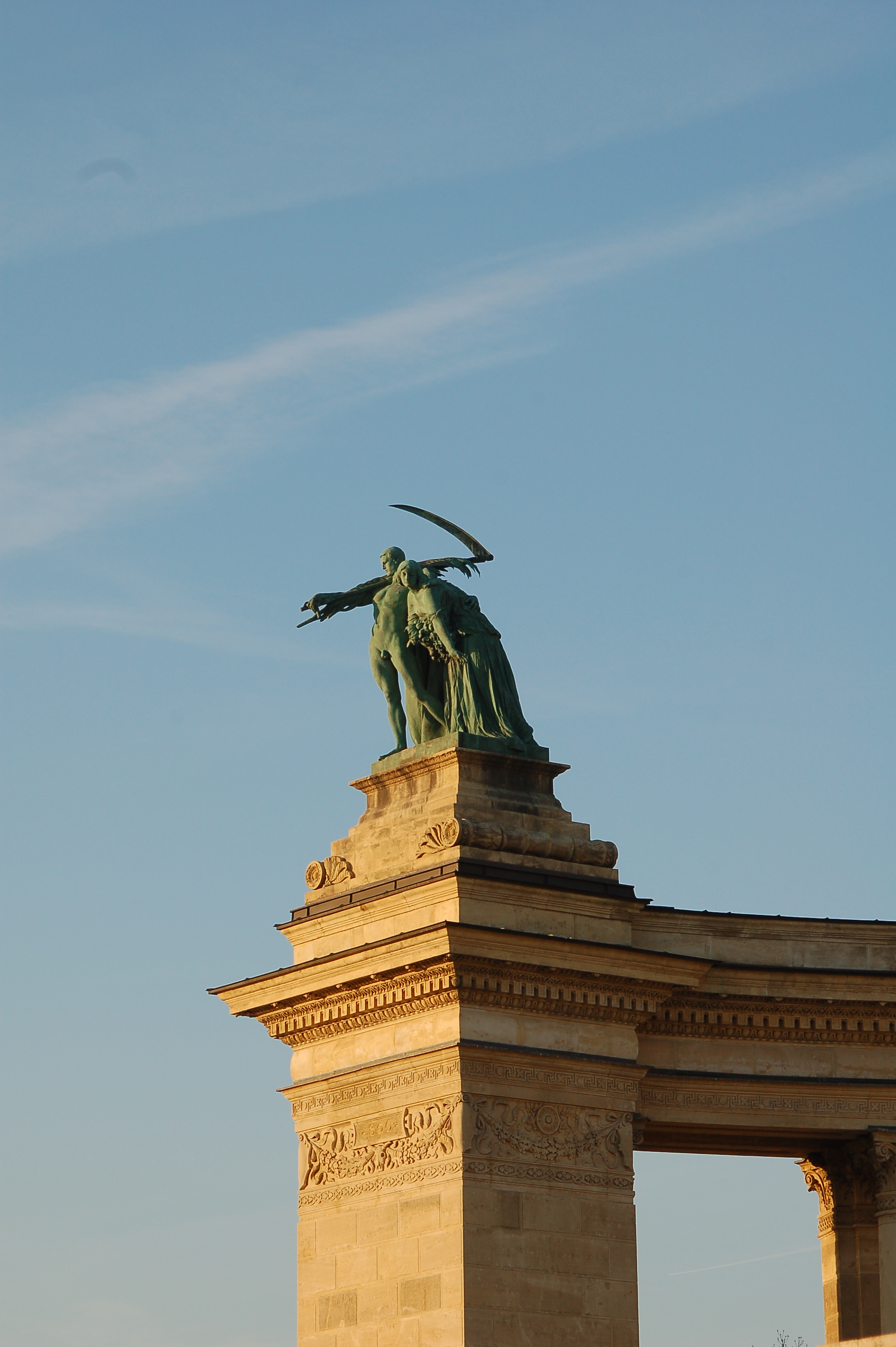 Scultpure haut arche de droite, place des héros.