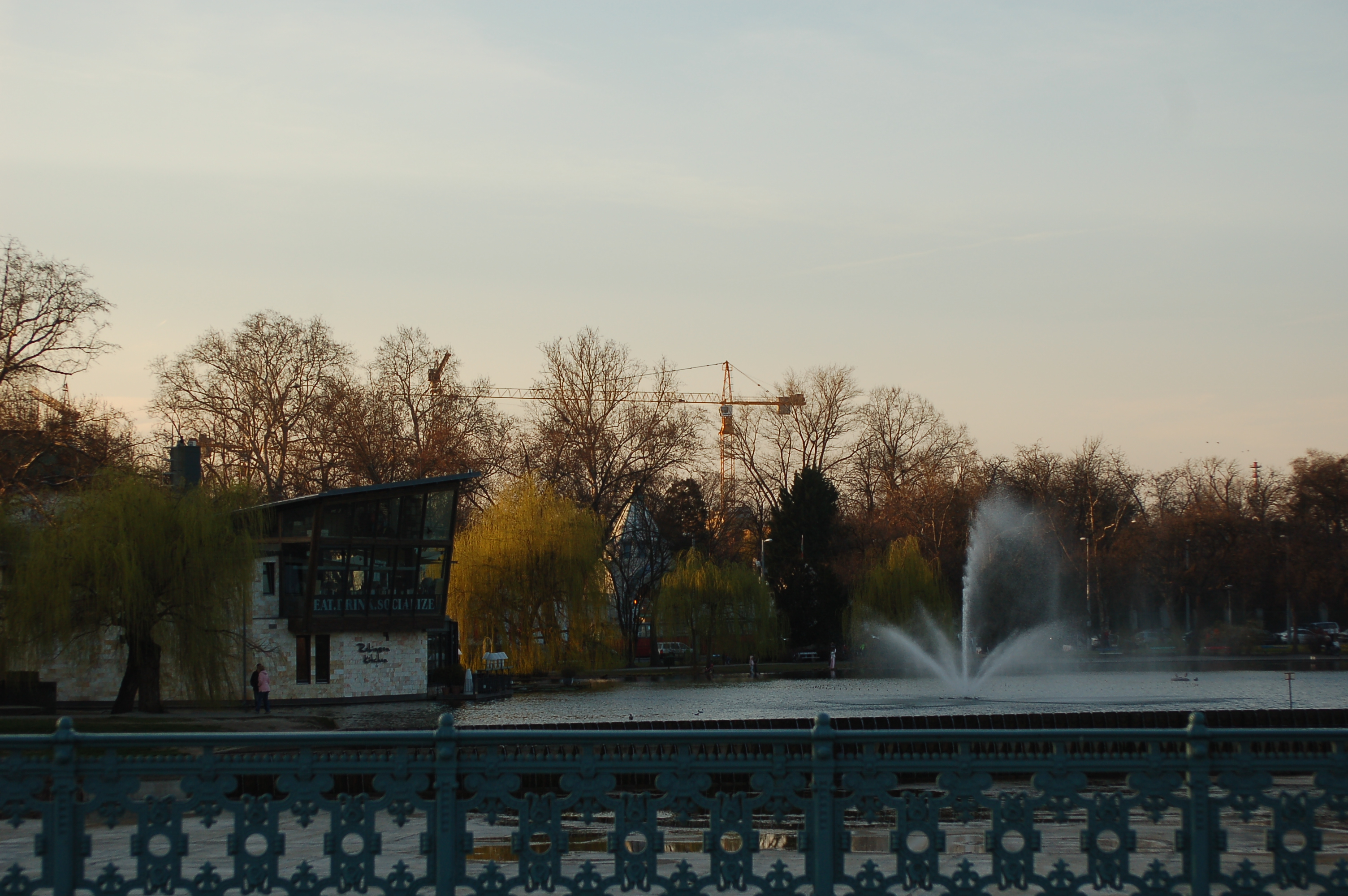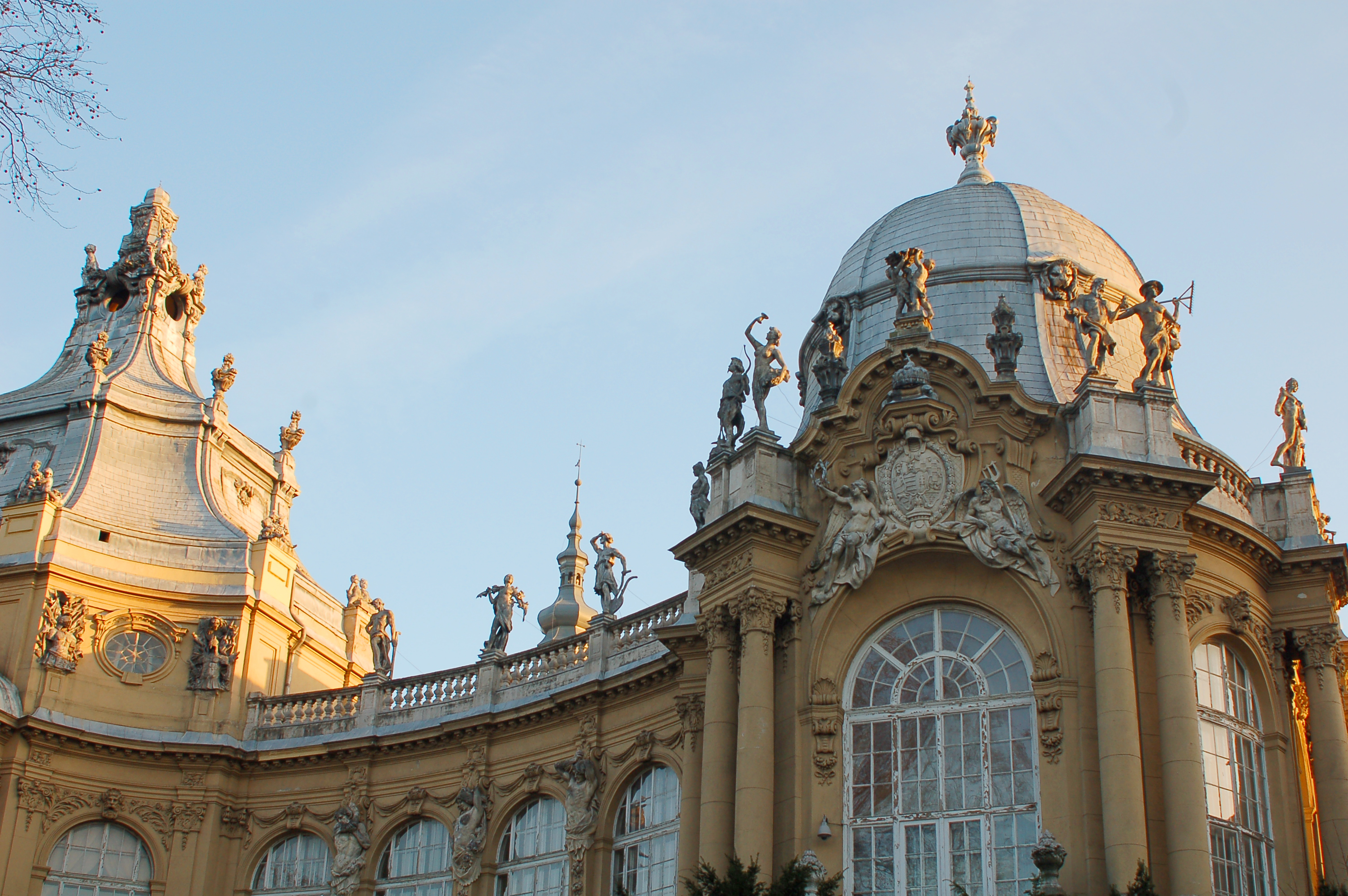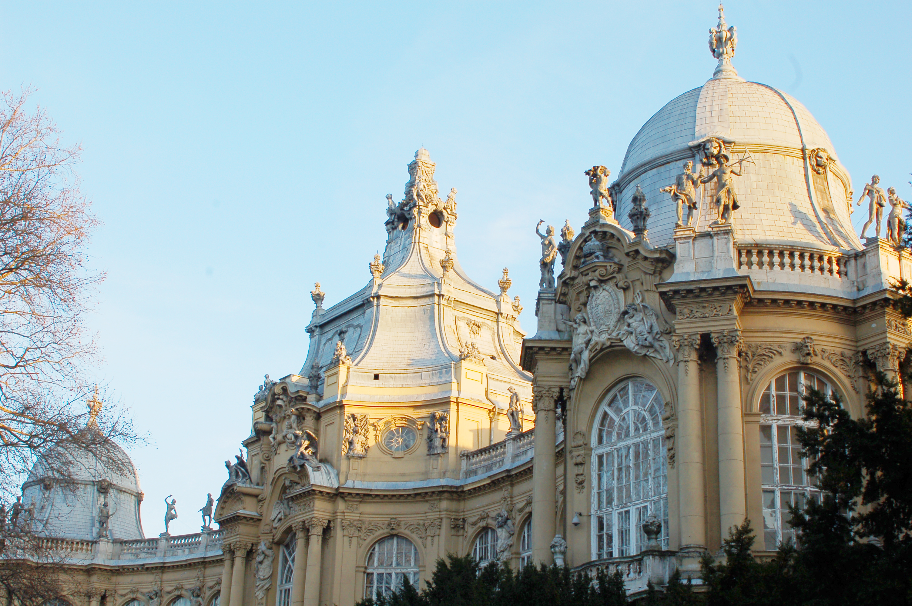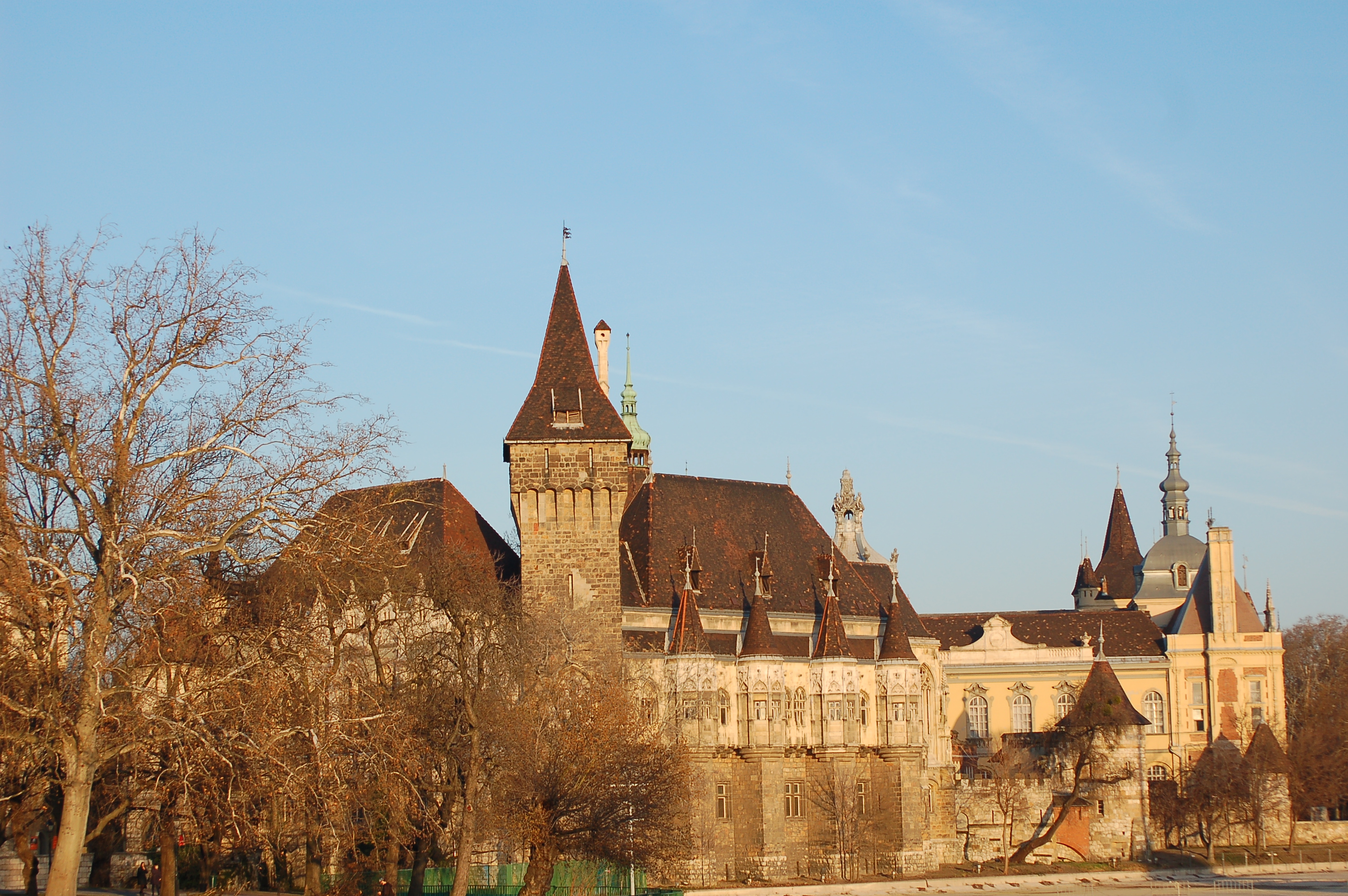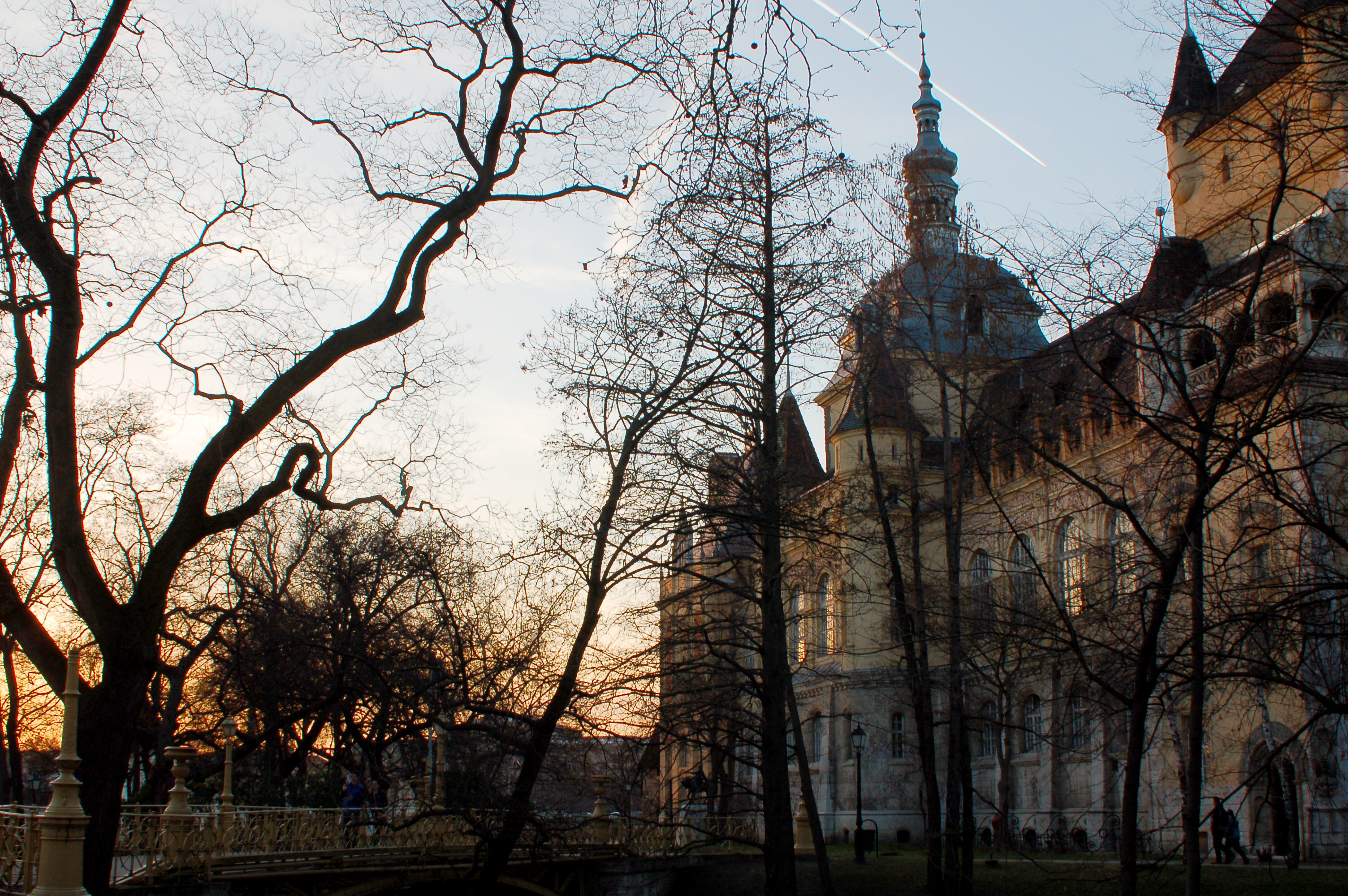 Parc du château de Vajdahunyad au soleil couchant.