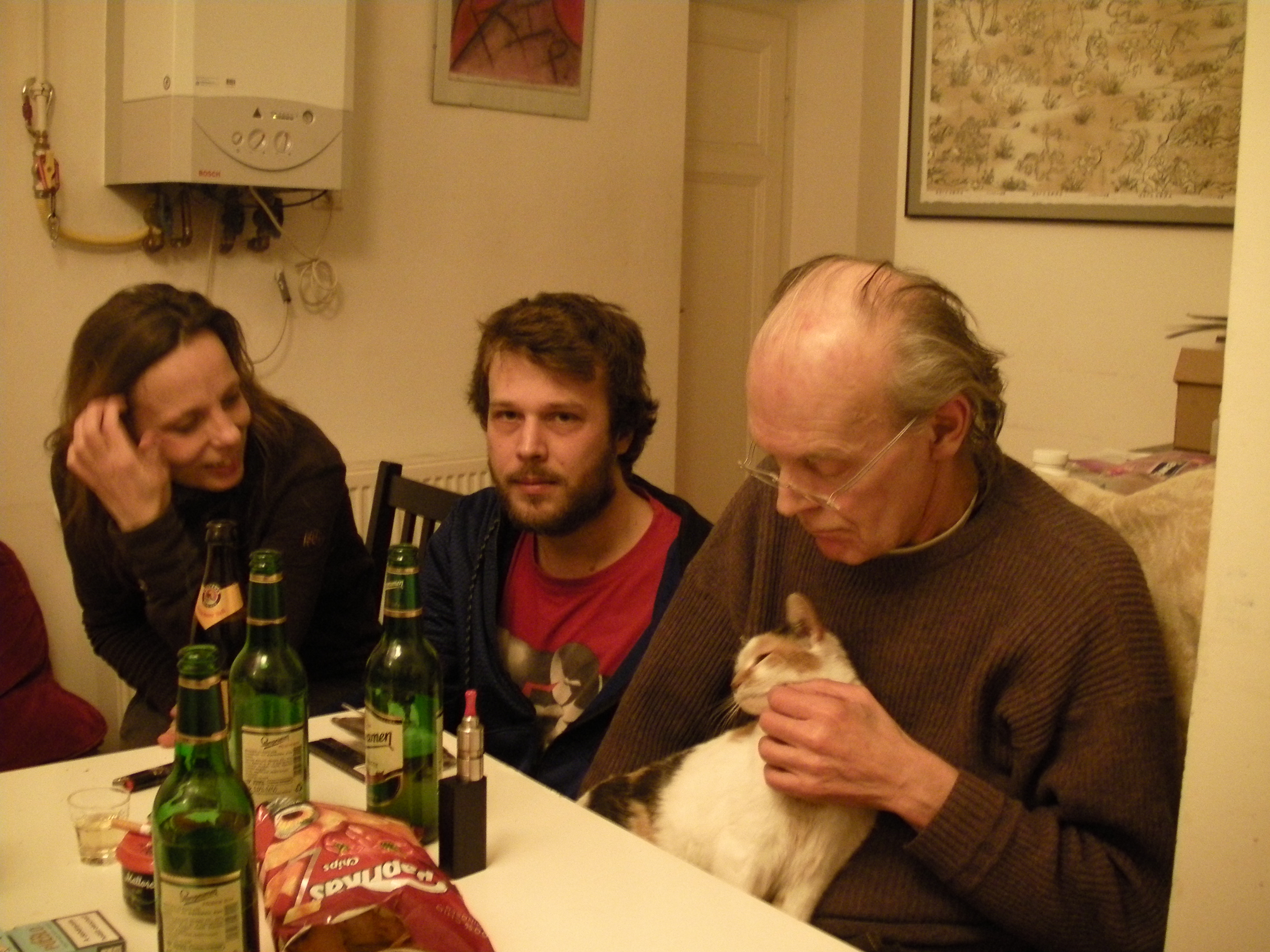Photo de famille, Szonya Jànos Pàl (papa de Jànos) et Tidà, très bon repas chez Szonya.