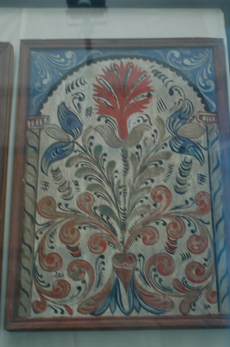 Peinture sur toile de motifs hongrois, musée ethnographique de budapest.