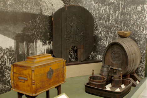 Coffre, tonneau, barrique et seaux pour accueillir le vin, musée ethnographique de budapest.